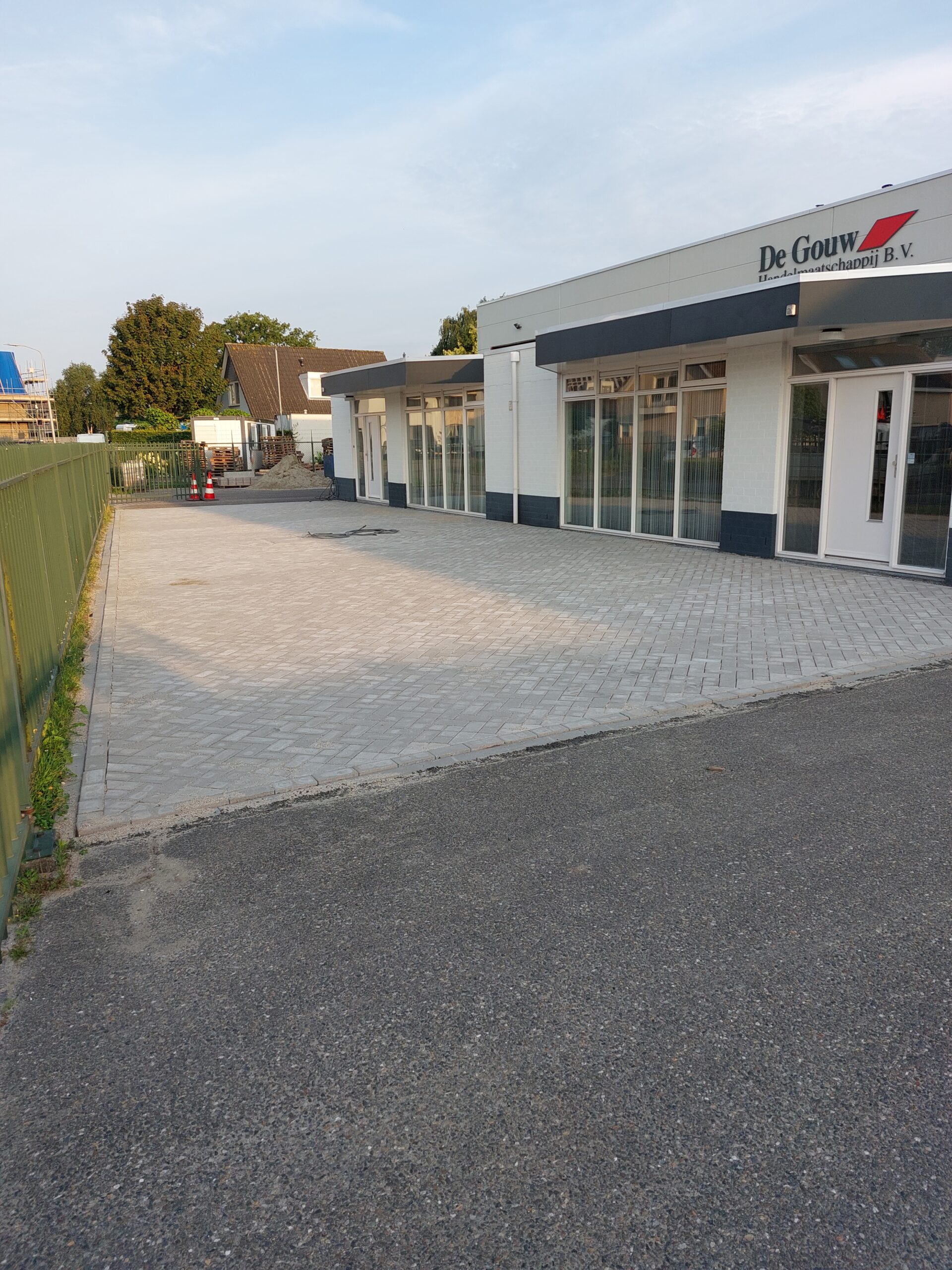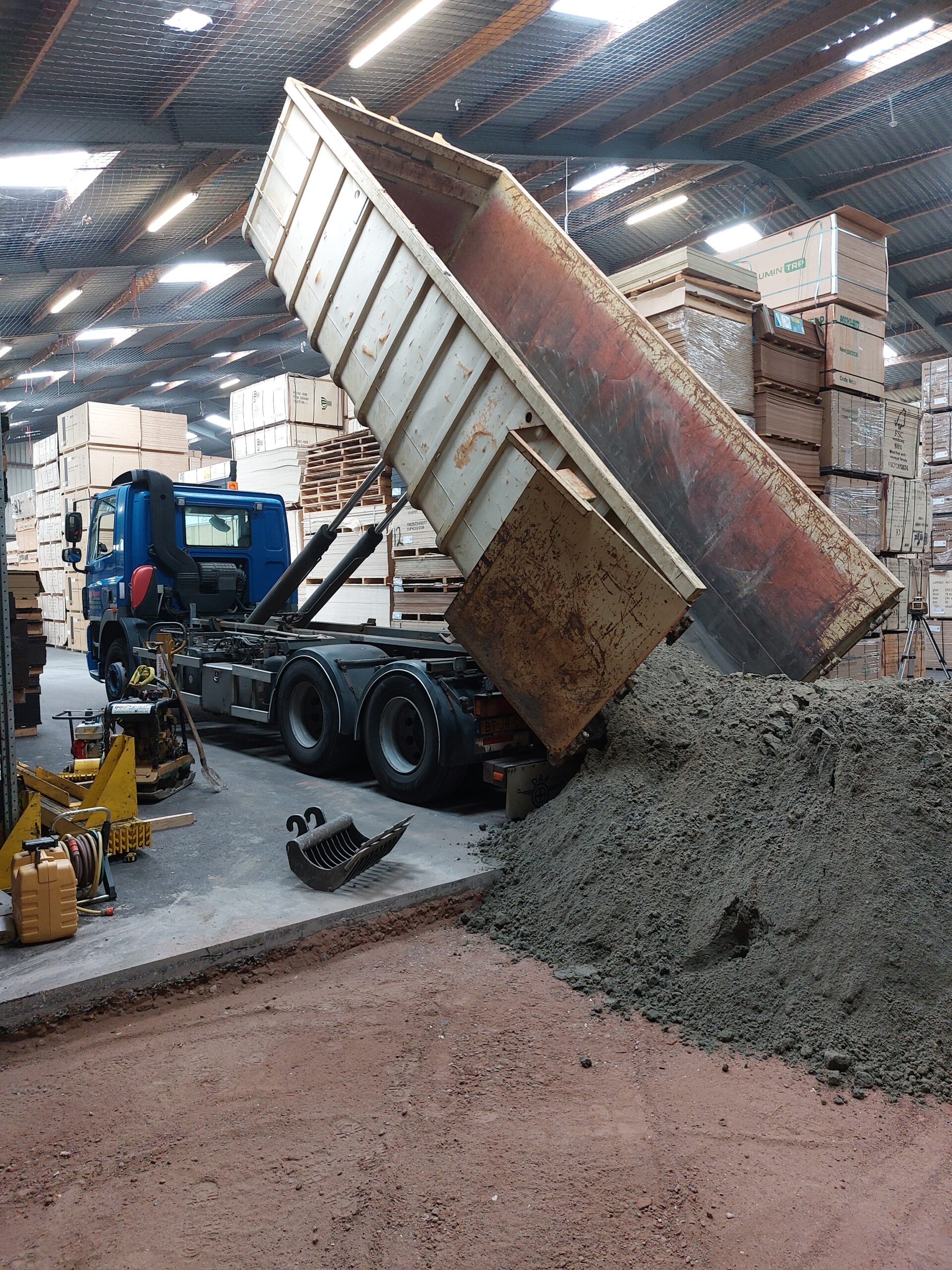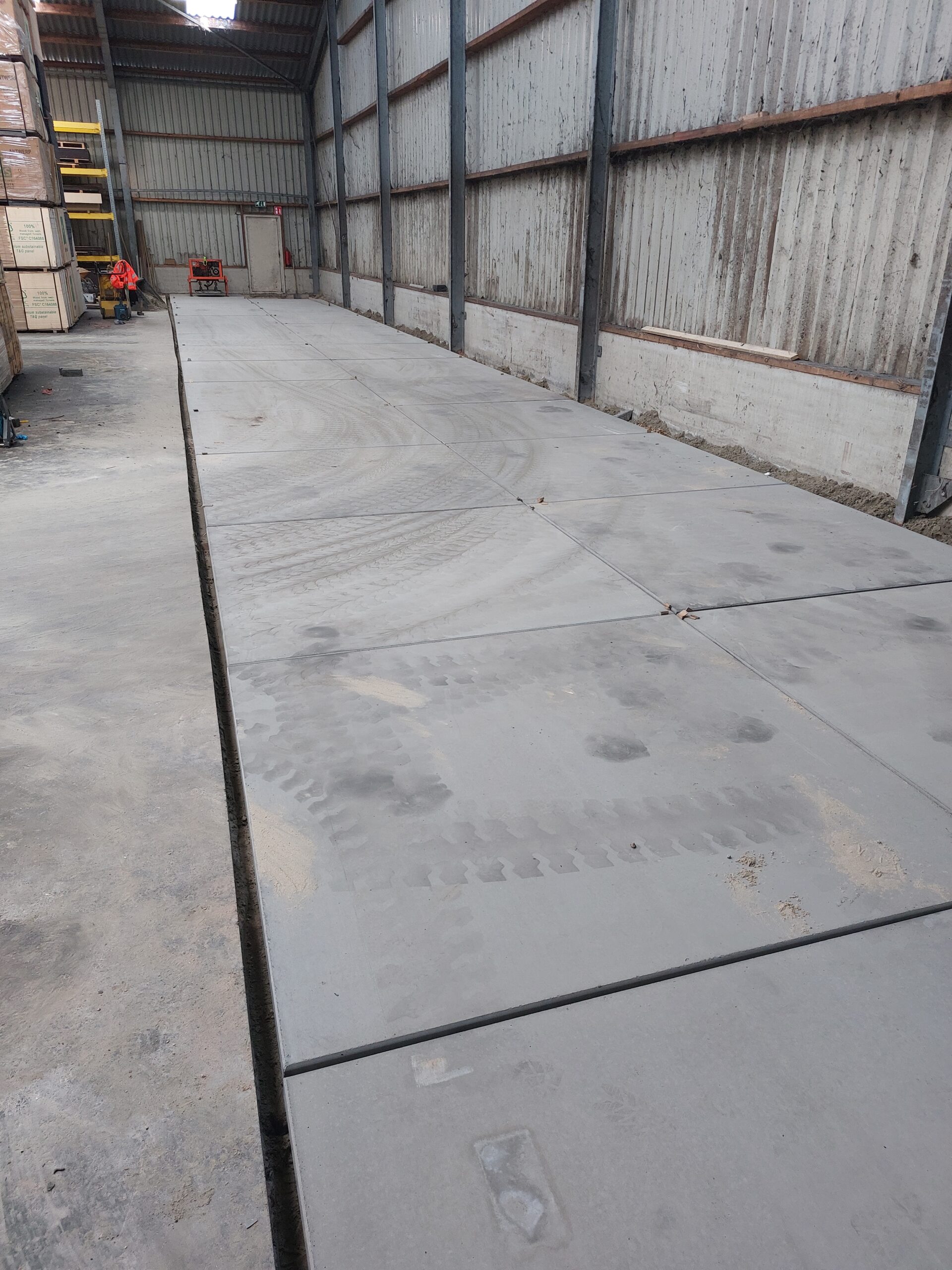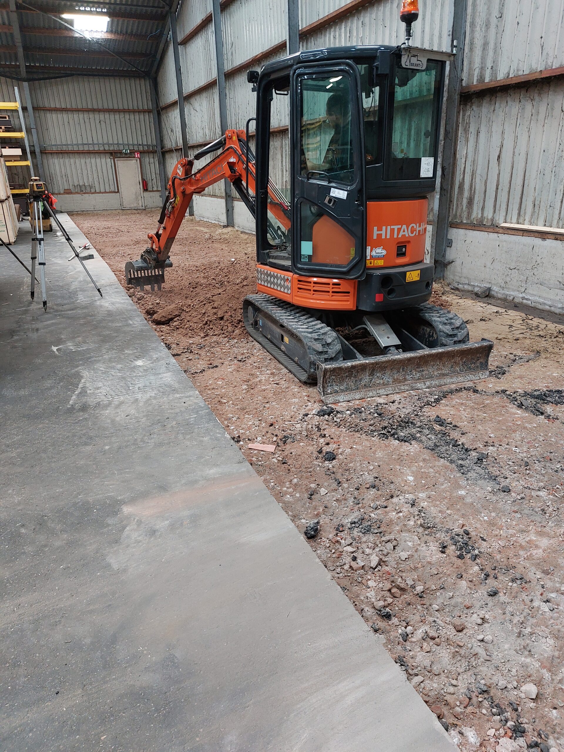 Uitbreken asfalt in loods en aanleg 130m2 betonplaten 200x200cm.